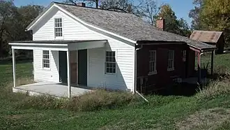 The Nishnabotna Ferry House is an historic building located in Lewis, Iowa, United States. The 1½ story, frame, Greek Revival structure was the home of Samuel Harlow Tefft who operated the cable ferry across the East Nishnabotna River from 1857 to 1859. The road that the ferry served was originally an Indian trail that became a primary route used by western bound emigrants, a stage coach and mail route, the Underground Railroad, a later Mormon Trail, and the Mormon handcart companies. The first ferry at this location was operated by Wm. S. Townsend in 1850. A toll bridge was built here 1853 or 1854. It became unstable by 1856. Tefft bought the property in 1857 in order to operate the ferry, and it is assumed that the house had already been built by that time.[2] A new bridge was built by Cass County in 1859. Tefft and his wife remained in the community and are buried in Oakwood Cemetery at Lewis. Several different families lived in the house until the mid-1970s. It was listed on the National Register of Historic Places in 2001.[1]