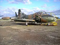 No. 14 Squadron took up the role of advanced training. It briefly operated a small number (up to four) of two-seat A-4 Skyhawks and two-seat T.11 Vampires before re-equipping with 16 BAC Strikemasters (colloquially "Blunties," in comparison to the pointed nose of the Skyhawks) in 1972. The Strikemasters were replaced by 18 Aermacchi MB 339CBs in 1991. A Strikemaster was previously displayed at the Royal New Zealand Air Force Museum's Ohakea wing, but is currently stored in the 42 Squadron hangar at Ohakea with a TA-4K Skyhawk. Five more are held in storage.