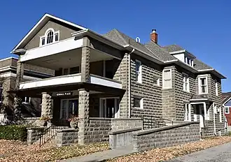 The Noble-Kendall House, also known as Kendall Place, is a historical residence located in Albia, Iowa, United States. Alvis E. Noble was a local businessman and contractor who operated a concrete block factory. He and his wife Cordelia had this house built after their previous house was destroyed in a fire. Completed in 1907, it was built with concrete block, which was an unusual building material for residential construction at the time.[2]