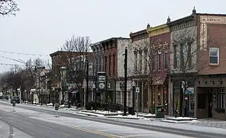 The North Milford Village Historic District consists of a three-block section of commercial buildings along Milford's North Main Street, along with adjacent residential areas along five east-west streets and six north-south streets, and the two historic mill ponds along Pettibone Creek. The district contains 312 structures, 255 of which contribute to the historical character of the district. The commercial district includes two- and three-story buildings primarily of brick and concrete block, in Italianate, Commercial brick, Tudor Revival, and Art Deco styles. The residential portion of the district contains wood frame, stone, concrete block and brick houses in a range of architectural styles, including Greek Revival, Italianate, Victorian Gothic, Late Victorian, Second Empire, Queen Anne, Stick, Chateauesque, Vernacular, Tudor Revival, Dutch Colonial Revival, Bungalow, Craftsman, English style and Cape Cod. The district also contains four historic churches.[2]