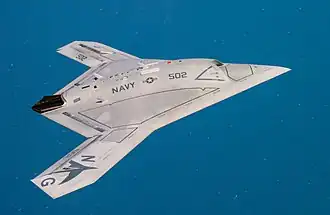 ![]() An X-47B demonstrator over the U.S. Navy's Atlantic Test Range | |