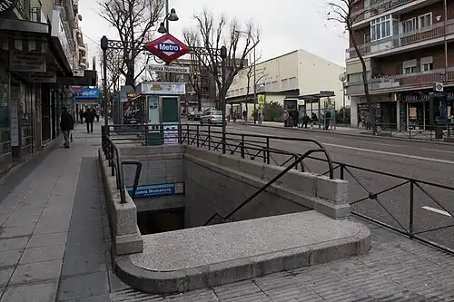 Nueva Numancia ([ˈnweβa nuˈmanθja], "New Numancia") is a station on Line 1 of the Madrid Metro, in the Puente de Vallecas district of the Spanish capital. Accessible from numbers 47, 54, 69 and 76 of the Avenida de la Albufera, it was opened on 2 July 1962. It is located in fare Zone A.[1]