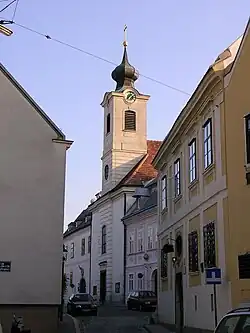 Nussdorf (until 1999 spelled Nußdorf; German pronunciation: [ˈnʊsdɔʁf] ⓘ; Central Bavarian: Nussduaf) was a separate municipality until 1892 and is today a suburb of Vienna in the 19th district of Döbling.