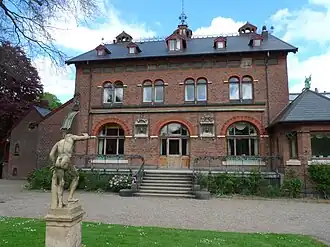 The Grey House on the other side of the street is a former villa constructed by Laurits Albert Winstrup in 1875. It was acquired by Carl Jacobsen in 1882 and used as the administration building of his new brewery. In 1901 it was expanded with a new north wing to designs by Hack Kampmann.