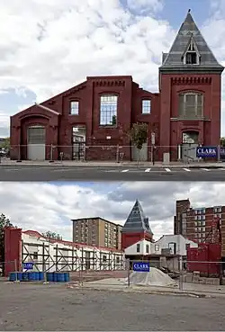 The official City Market groundbreaking ceremony was held September 1, 2010.[36][37] The Department of Housing and Urban Development (HUD) provided a $117 million loan for the development and the Obama administration chose City Market at O as one of 14 nationwide projects to receive expedited permitting and environmental reviews in order to provide hundreds of infrastructure jobs.[38][39] The Giant Food store closed and was razed in mid-2011,[40] and Cambria Suites agreed to operate the hotel in October.[41] The project was designed by Shalom Baranes Associates[23] and built by Clark Construction.[42][43]