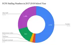 Initial enrollment for the 2017- 2018 school year was up by 826 students over the prior year to 42,204 students. Eleven thousand students in the FCPS were eligible for free or reduced-price meals or about 27% of the student population. About 4,910 students were receiving Special Education support and services. The number of students that do not speak English as a primary language in the school district numbered as 2,388 students. Student demographics for FCPS in the 2017- 2018 school year show that the county is composed of a new racial breakdown of White 26,082 students, 6,541 Hispanic/Latino students, 5,022 African American students, 2,236 Asian students, American Indian/Alaskan Natives and Pacific Islanders made up 253 students. A little over two thousand students were considered of two or more races. This is a slight shift in the new numbers from previous years.[6]