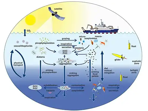 - ^ Stemmann, L.; Boss, Emmanuel (2012). "Plankton and Particle Size and Packaging: From Determining Optical Properties to Driving the Biological Pump". Annual Review of Marine Science. 4: 263–290. Bibcode:2012ARMS....4..263S. doi:10.1146/annurev-marine-120710-100853. PMID 22457976.