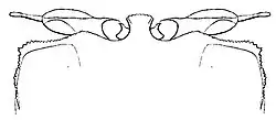 | An 1882 illustration of the eyestalks and the front of the carapace of Ocypode brevicornis by Edward J. Miers[1] | |