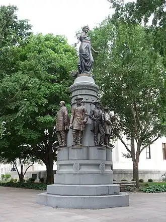 State leaders faced ongoing pressure to make the capital city more accessible by moving it closer to the center of the state.[7] In response, the legislature appointed a committee to evaluate potential options for the new capital city.[7] Four prominent Franklinton area land owners proposed a largely empty tract of land across the river from Franklinton.[8] The land owners offered to donate two 10-acre (4.0 ha) parcels of land to the state and proposed spending up to $50,000 to build structures and make other improvements to the area.[6][8]