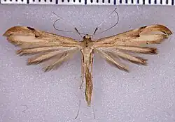This article incorporates text from this source, which is in the public domain. - ^ Pterophorid Descriptions and Notes (Lepid.) Archived 2012-07-14 at archive.today