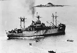 - 16 ammunition ships: Akutan, Firedrake, Lassen, Mauna Loa, Shasta, Vesuvius, Wrangell, Canada Victory (sunk by kamikaze 27 Apr) Bedford Victory, Bucyrus Victory, Manderson Victory, Las Vegas Victory, Logan Victory (sunk by kamikaze 6 Apr), Greenburg Victory, Pierre Victory, Hobbs Victory (sunk by kamikaze 6 Apr)