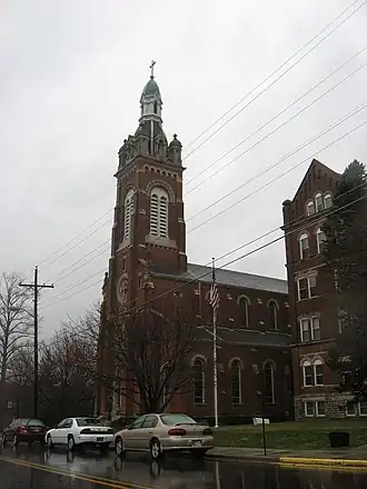 Oldenburg Historic District is a national historic district located at Oldenburg and Ray Township, Franklin County, Indiana. The district encompasses 106 contributing buildings, 2 contributing sites, and 6 contributing structures in the central business district and surrounding residential sections of Oldenburg. It developed between about 1837 and 1930, and includes a variety of popular architectural styles. Notable contributing buildings include the Town Hall (1878), Holy Family Church (1862), First Corpus Christi Church, Second Corpus Christi Church, Cemetery Chapel (c. 1880), Convent Chapel (1889-1901), Convent of the Immaculate Conception (1889-1901), Franciscan Monastery (1894), Stone Church (1846-1848), Waechter's Cradle Shop (1845), Oldenburg Lumber Company (c. 1885), Brockman House (c. 1890), George Holtel House (c. 1865), Fischer Tavern (c. 1850), Burdick Building, Hackman Store (1861-1862), Roell Farm House (c. 1865), and Kellerman House (c. 1860, 1902).[2]