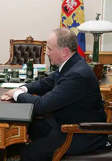 In 1982 he graduated from the Border Guards Higher School of the KGB in Moscow and subsequently served for the KGB until 1991.[2] It is sometimes claimed that for some time he served in Dresden together with Vladimir Putin.[3] In 1991-1994 he worked under Vladimir Putin in the Committee for the External Relations of the Saint Petersburg Mayor's Office to develop regulatory documentation regulating activities in the field of gambling.[4] From November 14, 1996, to October 30, 2007, Safonov was a deputy Interior Minister of Russia, appointed by President Putin. On October 30, 2007, Vladimir Putin appointed him plenipotentiary envoy to the Far Eastern Federal District.[5] Safonov was believed to be married to a daughter of Viktor Ivanov. However, in April 2009, an article indicated that Oleg Safonov's wife was named Lyudmila Gennadayevna. An alternate theory is that the Safonovs' daughter, Elizabeta, is married to Viktor Ivanov's son, Yaroslav.[6]