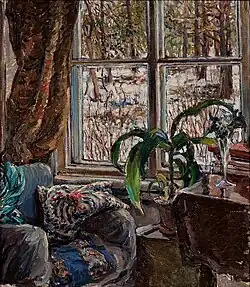 In the 20s Zhekulina participated in the life of the "Fire-color" Association, which also consisted of Arkhipov, Bogorodskiy, Dobuzhinsky, Petrov-Vodkin, Voloshin, and other major artists of the time. The main motives of the artist in painting during this period were - "hut buried in the snow, spring, silver gave summer".[4]