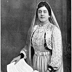 She moved to London in 1900 to train as a professional singer at The Royal College of Music.[4] To support herself during this time she gave elocution lessons, wrote fiction for periodicals and gave drawing-room performances about Indian legends.[4][1]