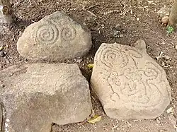 Some petroglyphs were also found in the island made from 300 AD. Many of the petroglyphs include spirals. Others are used to depict the head of anthropomorphic figures, some of which resemble Mesoamerican depictions of Nagual, suggesting the shared practice of Tonal spirituality.[1]