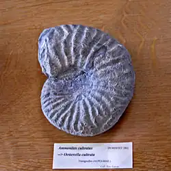 | Fossil of Oosterella cultratus from Maritime Alps, on display at Galerie de paléontologie et d'anatomie comparée in Paris | |