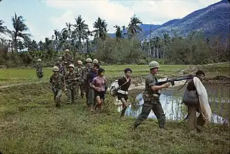![]() 1st Cavalry Division soldiers with Vietcong prisoners | |||||||