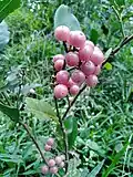 Glycosmis pentaphylla is a species of flowering plant in the family Rutaceae, known commonly as orangeberry and gin berry. It occurs in Southeast Asia and northern Australia. It is cultivated for its edible pink fruits. In temperate zones, it can be cultivated indoors as a houseplant.