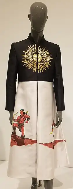 Dugi has exhibited his work at the Autry Museum of the American West[1] in Los Angeles, the Denver Art Museum, the Museum of Indian Arts and Culture, the Wheelwright Museum of the American Indian,[2][6] the Avenir Museum of Design and Merchandising,[3] among other venues. His work was included in the traveling exhibition, Native Fashion Now, organized by the Peabody Essex Museum.[4]