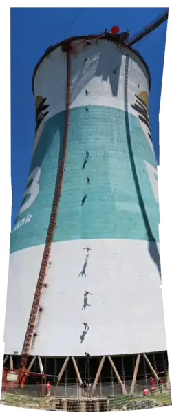 Both towers are painted, one functioning as an advertising billboard and the other containing the largest mural painting in South Africa.[7] The towers are also used for bungee and BASE jumping from a platform between the top of the two towers as well as a bungee swing into one of the towers.[8][9]