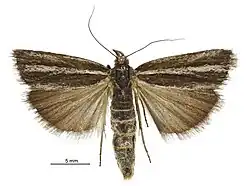 5. ^ a b c d Gaskin, D. E. (1975). "Revision of the New Zealand Crambini (Lepidoptera: Pyralidae: Crambinae)". New Zealand Journal of Zoology. 2 (3): 265–363. doi:10.1080/03014223.1975.9517878.