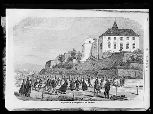 Christiania Skøiteklub - later Kristiania Skøiteklub (KSK) - was founded 18 February 1864. The formation of the club was a spin-off from a skating competition on fjord ice in the Oslo Fjord 1 March 1863.[2] The skating sport was quite popular at the time, and the club had about 1000 members after two years, and more than 5000 members in 1870, when Christiania had less than 70000 inhabitants.[2] In 1924, the club changed its name to Oslo Skøiteklub.