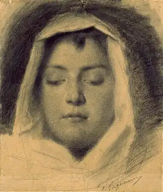 Osvaldo Bignami was apprenticed to a decorative artist in Milan, where he moved when he was in his twenties, and later enrolled at the Brera Academy. From his earliest work, he was oriented towards fresco decoration: this was the technique he used in the portraits of Masaccio and Giovanni Bellini (originally on the loggias of the Brera Palazzo in Milan and now lost) which won him the Mylius Prize in 1893 and 1894. He was a regular participant in the Brera exhibitions until 1900. His most noteworthy paintings were those with religious subjects, genre scenes and the portraits of Luigi Sabatelli, Giacomo Mantegazza and Enrico Zanoni (formerly in Milan, Società Artisti e Patriottica). In later years he devoted himself to the decorative painting of civic buildings, such as Teatro Fraschini in Pavia (1909), and religious buildings, such as some of the chapels at the Monumental Cemetery in Lodi (1902–1914) and the church of Santa Maria del Carmine in Milan (1904, 1909). He also experimented with lithography.