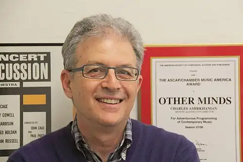 The name "Other Minds" has been attributed by Jim Newman to an anonymous obituary that ran in The New Yorker in 1992 which stated that John Cage "...composed music in other people's minds."[2] Other Minds has achieved wide recognition and acclaim including the ASCAP award in 2009 for adventurous programming,[3] the American Music Center's 2005 letter of distinction for service to American composers,[4] and the American Composers Forum 2017 Champion of New Music award for Other Minds Executive and Artistic Director Charles Amirkhanian.[5]