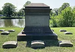 He was a member of the Union League Club of Chicago. He enjoyed collecting rugs, and his Persian collection in Lake Geneva was thought to be worth over $150,000.[4] Young died on November 30, 1906, at his Lake Geneva estate and was buried in Chicago's Oak Woods Cemetery.[1] He was thought to be worth about $20 million at the time of his death; $460,000 was donated to charity in his will, mainly to the Home for Incurables.[7]