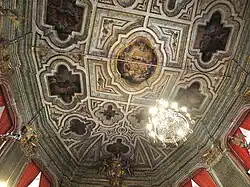 The nave lining has a rococo pictorial set from 1768 also attributed to João de Carvalhais.[3] There are fifteen panels with marbled and sparkled frames depicting passages from the Old Testament.[5]