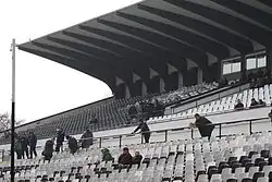 There is one remaining ultras group called Boys Sofia, a name referring to the fact the traditional support is from the south of the city; in the past there were multiple other groups. They have a long standing friendship with BSC Young Boys and FC VSS Kosice.They also have friendships with Bulgarians PFC Cherno more Varna and PFC Dobrudzha.[6][7] The traditional rivalry has been with Levski Sofia, also known as Oldest capital derby, however in recent decades Lokomotiv Sofia has become the major rival.[8] The derby between them is called Little capital derby. The other city rivalry is with CSKA Sofia.