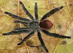 - ^ a b c Bertani, R. (2012). "Revision, cladistic analysis and biogeography of Typhochlaena C. L. Koch, 1859, Pachistopelma Pocock, 1901 and Iridopelma Pocock, 1901 (Araneae, Theraphosidae, Aviculariinae)". ZooKeys (230): 1โ94. Bibcode:2012ZooK..230....1B. doi:10.3897/zookeys.230.3500. PMC 3494022. PMID 23166476.