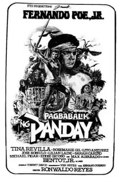 Pagbabalik ng Panday (lit. 'Return of the Blacksmith') is a 1981 Filipino fantasy film produced and directed by Fernando Poe Jr., based on the Pilipino Komiks character Panday.[1] It is the sequel to the 1980 film Ang Panday and stars Poe as the titular character, alongside Tina Revilla, Max Alvarado, Bentot Jr., Rosemarie Gil, Lito Anzures, Lilian Laing, and Sarah Cariño. The film was released by FPJ Productions on December 25, 1981[2] as an official entry of the 7th Metro Manila Film Festival. Ang Panday: Ikatlong Yugto followed in 1982.
