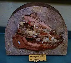 | Palaeotherium magnum cast skeleton from the French commune of Mormoiron, National Museum of Natural History, France | |