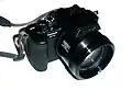 The lens itself extends from the barrel of the camera and cannot have filters or lens hoods attached directly to it. A special adapter is required which allows 72 mm filters and the included lens hood to be attached to the barrel of the camera. Alternatively, adapters are available from third-party manufacturers that allow less expensive 62 mm filters to be used.