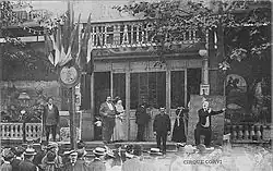 Itinerant fairs housed in temporary structures such as the Circus Corvi made seasonal appearances along the boulevards of Paris. Seurat's interest in these fairs produced several studies in anticipation of Parade de cirque, including a series of cafe-concert performances, performing saltimbanques or acrobats.[5] The name Fernand Corvi appears on Seurat's small sketch for the ticket window.[5]