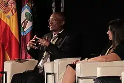 In the next local elections in August 2016, Tau stood for re-election as the ANC's mayoral candidate,[28] although some segments of the regional party suggested fielding an alternative candidate.[29][30] But the ANC's vote share declined precipitously in the election: it remained the largest party on the Johannesburg council but lost its majority, winning only 45 per cent of the vote.[31] At the inaugural council meeting on 23 August, the DA's Herman Mashaba was elected as mayor, receiving 144 votes to Tau's 125; decisive for the DA's victory was the support of the Economic Freedom Fighters.[32][33]