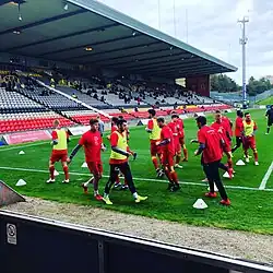Firhill has been used by other football teams and for rugby over the years. Between 1986 and 1991 Clyde ground shared with Thistle,[104] following their eviction from Shawfield.[106] Hamilton Academical also ground shared for two spells over seven years,[107] following them being forced out of Douglas Park in 1994. In December 2005, Firhill also became the home of Glasgow's professional rugby union team, Glasgow Warriors, when they moved from their previous base at Hughenden. After returning to Hughenden in 2006, the Warriors took up a two-year residency at Firhill from the start of the 2007–08 Celtic League season.[108] This was extended in April 2009 for a further five years.[109][110] Glasgow Warriors left Firhill after the 2011–12 season and moved to Scotstoun Stadium.[111][112] During the 2012–13 season the ground was also used by Celtic's under-20 squad as their home ground,[113] but following Thistle's promotion this stopped for the 2013–14 season.[114]