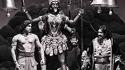 Pathala Bhairavi achieved cult status in Telugu cinema; in July 2010, Hemanth Kumar of South Scope called Pathala Bhairavi a film that "took an entire generation by storm" and praised its special effects in particular, which Kumar felt were ahead of their time.[39] The lines "Nijam Cheppamantara Abaddham Cheppamantara" ("Shall I say the truth? or shall I lie?"), "Sahasam Seyara Dimbhaka" ("Be adventurous man!"), "Naruda Yemi Nee Korika?" ("O Human, what is your desire?") became popular and phrases such as "dingari" ("servant") and "dimbhaka" ("fool") later became a part of Telugu vernacular.[3] The film's story is regularly staged as a play by Surabhi theatre group, known as Sri Venkateswara Natya Mandali.[40][41][42]