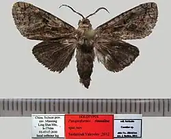 - ^ a b c Ivinskis, Povilas; Rimsaite, Jolanta; Saldaitis, Aidas & Yakovlev, Roman (2012). "Description of two new species of Cossidae (Lepidoptera) from China". ZooKeys. 192: 35–49. doi:10.3897/zookeys.192.2611. PMC 3349061.