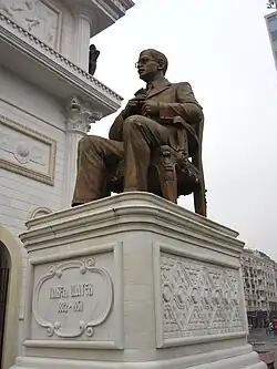 The fate of Shatev was exploited by Bulgarian historians during the Communist era in favor of their cause in Macedonia. After the break-up of Yugoslavia he was rehabilitated in the new Republic of Macedonia (now North Macedonia) as an unjustly accused of Bulgarophilia by the Titoist regime and a Macedonian patriot.[24] His memoirs were published in Macedonian in 1994.[1] Although Shatev is considered a Macedonian by the Macedonian historiography,[25] per Macedonian researcher Anastas Vangeli, he identified himself as Bulgarian.[26] In North Macedonia, he was praised as a hero of the political right during the 2010s, who ignored his revolutionary anarchist and later communist views. In 2008, VMRO-DPMNE established a conservative institute bearing his name. In 2010, the government erected a monument of him and his anarchist terrorist group.[26]