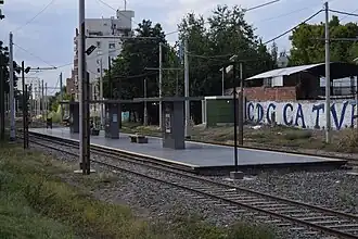 Pellegrini is a light rail station located at the intersections of Pascual Segura and Pellegrini Streets in the City of Mendoza, Capital Department, Mendoza Province, Argentina.