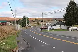 The route leaves Shenandoah for West Mahanoy Township and becomes Ringtown Boulevard, curving north and east to ascend a forested hill as a three-lane road with two northbound lanes and one southbound lane. PA 924 becomes two lanes again and bends to the north, passing to the east of the community of Shenandoah Heights. The road heads into dense forests and turns northeast off Ringtown Boulevard onto an unnamed road, crossing into Union Township and passing to the east of Fetter Pond. The route continues into East Union Township and comes to an intersection with PA 339. At this point, the two routes head north for a concurrency on Main Boulevard and pass through residential areas in the community of Brandonville. PA 339 splits from PA 924 by turning west, with PA 924 continuing along Main Boulevard, curving northeast and running through farmland with some woods and homes. The road crosses the Catawissa Creek and winds northeast through forested areas with some fields, heading east. The route turns north and passes residences in the community of Sheppton as Center Street. PA 924 becomes unnamed and runs through forests with some homes and passes to the east of the community of Oneida, where it curves to the east-northeast through more woodland.[2][3]