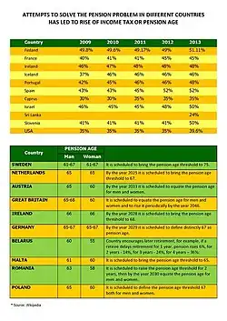 - Retirement age increase;