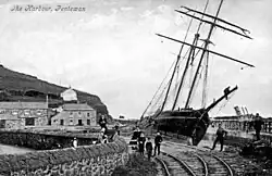 On 1 January 1876 the Cornwall Railway was taken over by the Great Western Railway and the larger company directed china clay traffic to its harbour at Fowey, providing better facilities and a more efficient transport link from connected china clay pits. The impact on the Pentewan traffic was dramatic; carryings fell from 19,672 tons in 1876 to 5,341 tons in 1877. The £50,000 capital of the expanding Pentewan company had only been authorised by Parliament, and few subscribers came forward with the money: by 1880 only £11,824 had been forthcoming by 1880, and profits from current operations were inadequate to pay the ground rent.[1][2]