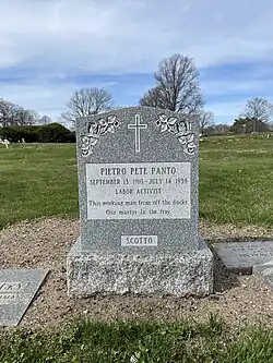 Pietro "Pete" Panto (September 13, 1910 – July 14, 1939) was an Italian American longshoreman and union activist[1] who was murdered by the mob for attempting to revolt against union leadership.[2] Panto was born in Brooklyn and at an unknown date he left the United States, returning on June 3, 1924, on the SS President Wilson that sailed out of Naples. He left the United States again, returning on March 22, 1934, on the SS Sinaia that sailed out of Palermo. Both ship registries list 198 Sackett Street in Brooklyn as his address.