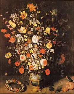 The Hessisches Landesmuseum in Darmstadt owns two flower-pieces. One bears his monogram and the date 1611, and the other painting is signed "P. BINOIT. FRANCFORT 1620".[2]: 129 The Swedish Nationalmuseum in Stockholm holds a painting named "Still Life with a Meal".[3]