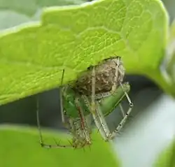 Peucetia viridana is a species of spider found in India, Myanmar and Sri Lanka.