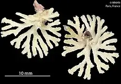 Phidoloporidae is a family within the bryozoan order Cheilostomatida. The colonies of many genera grow in an upright, reticulate branching manner, which gave rise to one colloquial name for this group as 'lace corals'. Zooids generally open on one side of the branches.